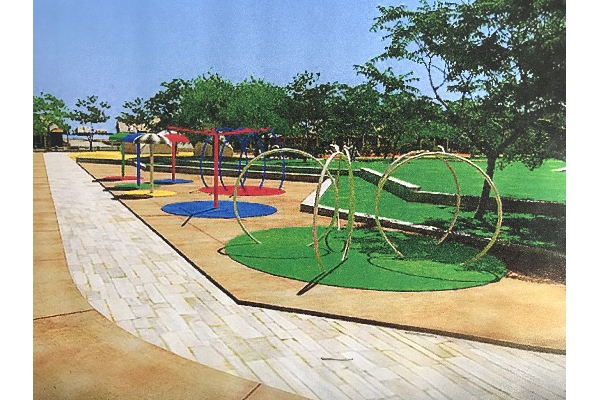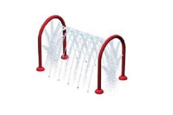 es un juego que genera un pasillo de agua, el cual cuenta con 10 chorros de piso y 10 aspersores mas dos anillos celeste |